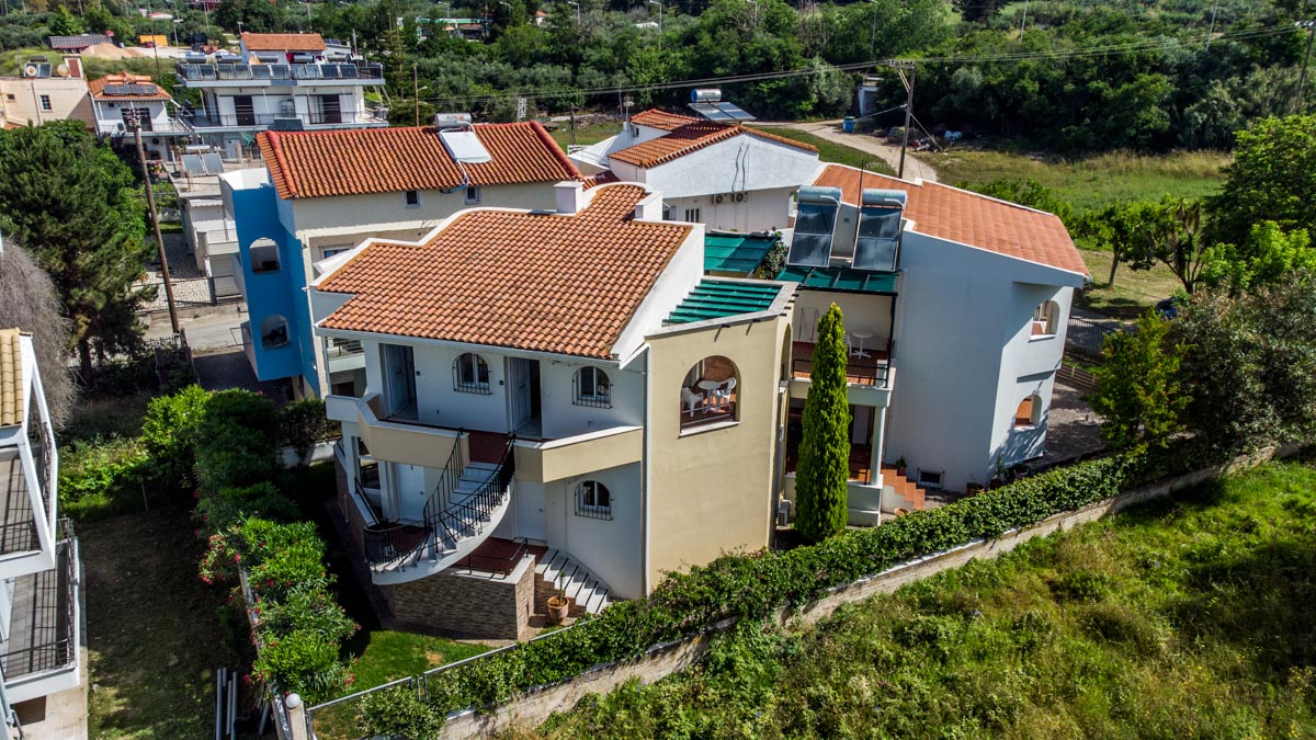 Περιλαμβάνει 4 επιπλωμένα διαμερίσματα χωρητικότητας 2 και 3 ατόμων αντίστοιχα, με δυνατότητα προετοιμασίας γευμάτων και θέα στον κήπο και στη θάλασσα.