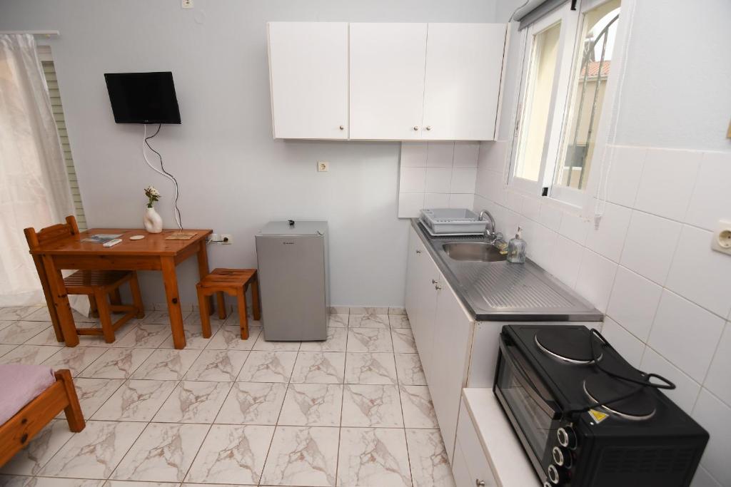 Eξοπλισμένη κουζίνα με ψυγείο και φουρνάκι